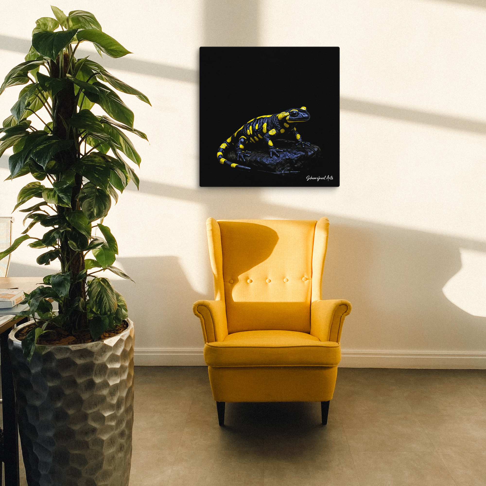 Der Feuersalamander (Salamandra salamandra) ist eine auffällig gefärbte Amphibienart aus der Familie der Salamandridae. Sein schwarzer Körper mit leuchtend gelben Flecken oder Streifen dient als Warnsignal für Fressfeinde – ein Hinweis auf die giftigen Hautsekrete, die er bei Bedrohung absondern kann.